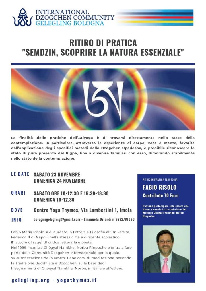 Ritiro di pratica con Fabio Maria Risolo “Semdzin, scoprire la Natura Essenziale”, 23/24 Novembre a Imola Pubblicato dabolognagelegling4 ottobre 20195 marzo 2024Pubblicato in: Corsi CONTATTI PER INFO / ISCRIZIONI DOVE SI FA IL CORSO MAPPA Condividi: Fai clic per condividere su Telegram (Si apre in una nuova finestra) Telegram Fai clic per inviare un link a un amico via e-mail (Si apre in una nuova finestra) E-mail Fai clic qui per stampare (Si apre in una nuova finestra) Stampa Mi piace Caricamento...