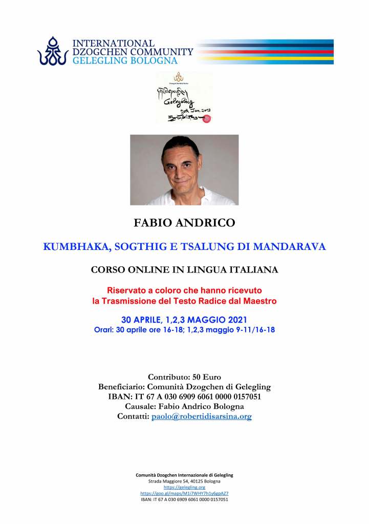 FABIO ANDRICO KUMBHAKA, SOGTHIG E TSALUNG DI MANDARAVA – CORSO ONLINE IN LINGUA ITALIANA 30 APRILE, 1,2,3 MAGGIO 2021 Pubblicato dabolognagelegling26 gennaio 20215 marzo 2024Pubblicato in: Corsi Condividi: Fai clic per condividere su Telegram (Si apre in una nuova finestra) Telegram Fai clic per inviare un link a un amico via e-mail (Si apre in una nuova finestra) E-mail Fai clic qui per stampare (Si apre in una nuova finestra) Stampa Mi piace Caricamento...