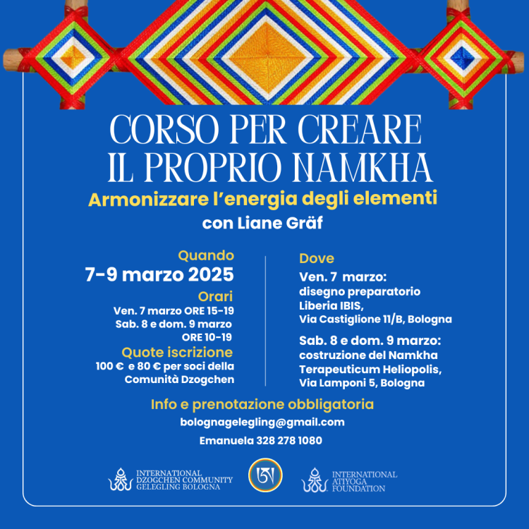 Venerdì 14 marzo sarà possibile completare il Namkhà, nel caso non sia finito, e autenticarlo con la Ganapuja di luna piena presso la Liberia IBIS, Via Castiglione 11/B, Bologna – ORE 16-20 e Ganapuja ore 20:15.
